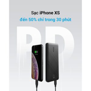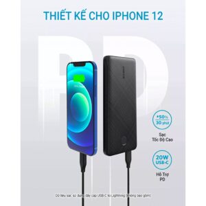 Pin dự phòng dung lượng cao 20000mAh với công nghệ sạc tối ưu PowerIQ và cổng sạc vào theo chuẩn USB-C (input only) cùng với MicroUSB tiện lợi, tương thích với iPhone, Samsung, iPad…