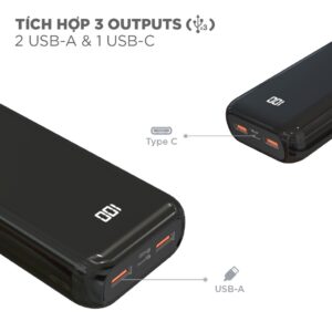 ⚡Tích hợp 3 cổng output giúp sạc ba thiết bị cùng lúc.